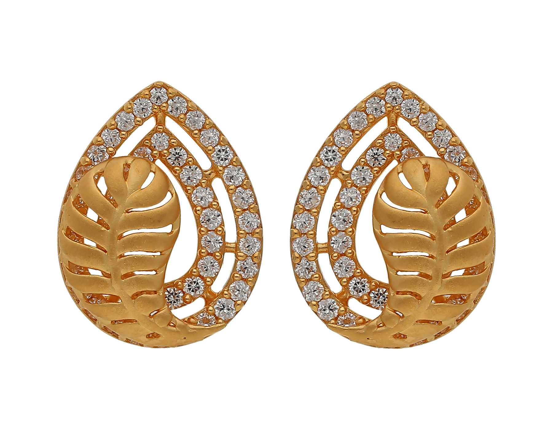 ELEGANT DESIGNED GOLD STUD WITH WHITE STONE